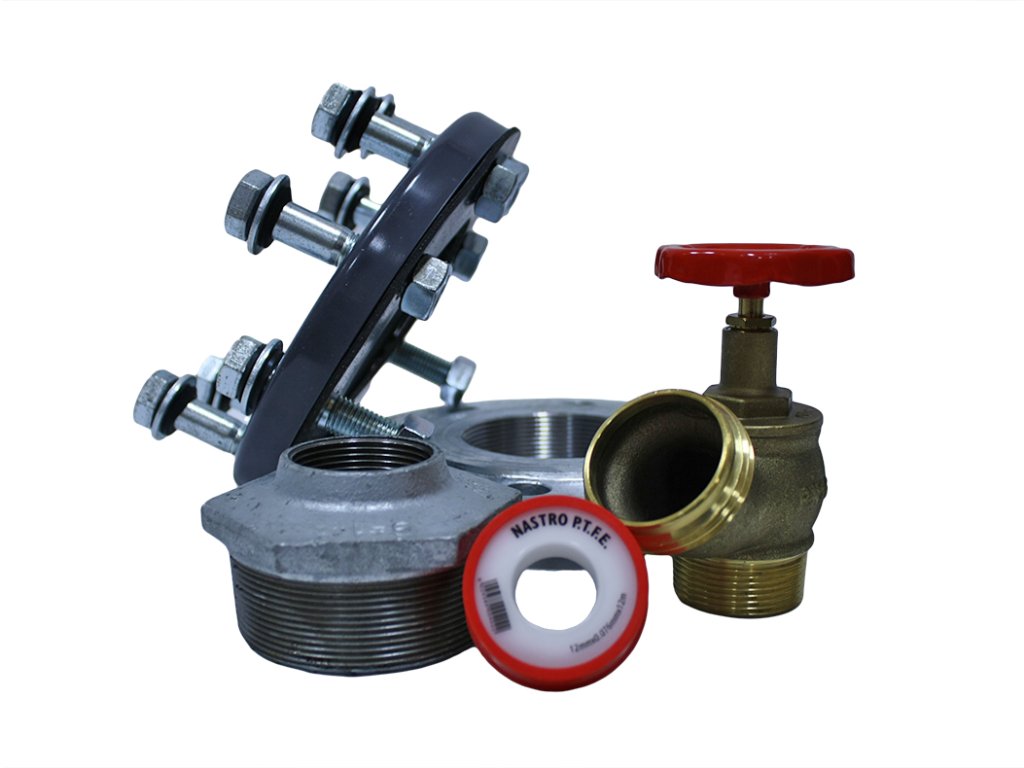 2x PVC přírubu, pryžové těsnění a spojovací materiál pro montáž příruby.